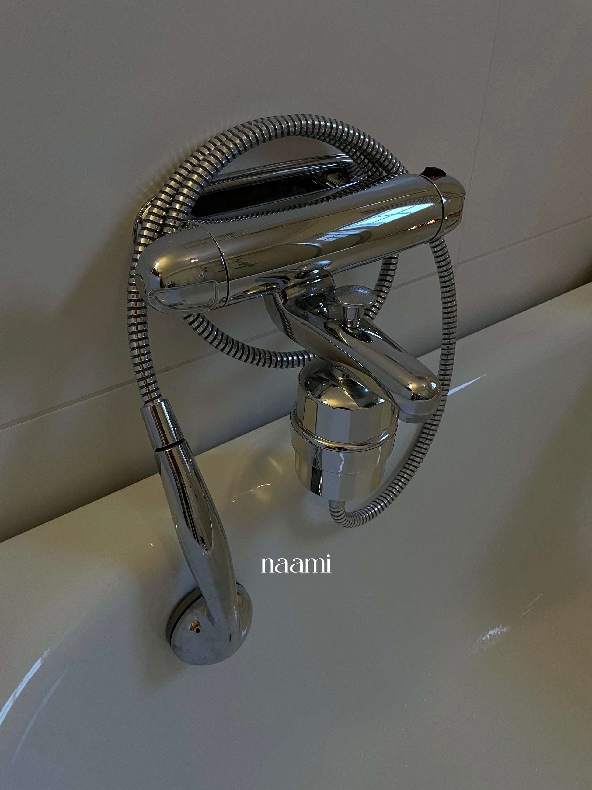 naami är ett flerstegs-vattenfilter som passar alla duschar och badkar, som filtrerar bort metaller och mineraler, vilket lägger grunden för renare och hälsosammare hår och kropp.